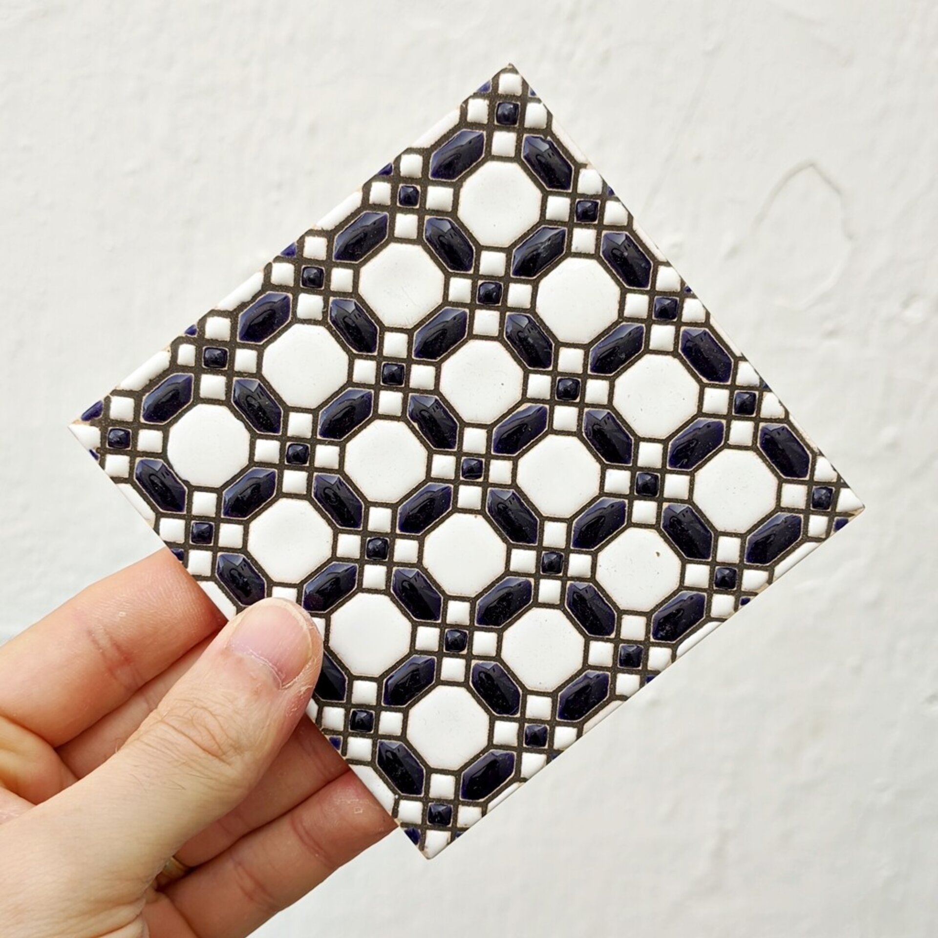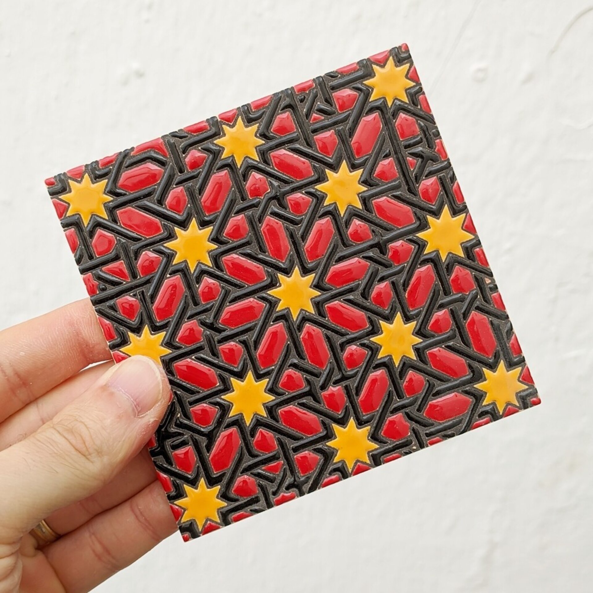 Azulejo artesanal de 11cm. esmaltado en cuerda seca.